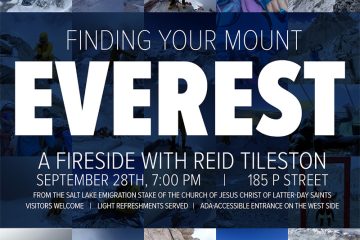 Join us for an Emigration Stake Fireside, "Finding Your Mount Everest" on 9/28 at 7pm with Reid Tileston who recently climbed the world's highest peak.